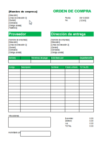 Formato de orden de compra en excel